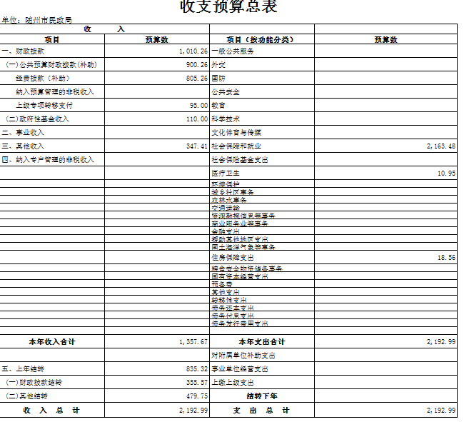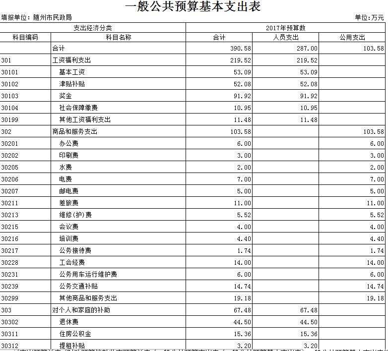 2017年預算中,我局總預算為2192.99萬元。基本預算支出為395.66萬元,其中:人員支出292.08萬元,公用支出103.58萬元。