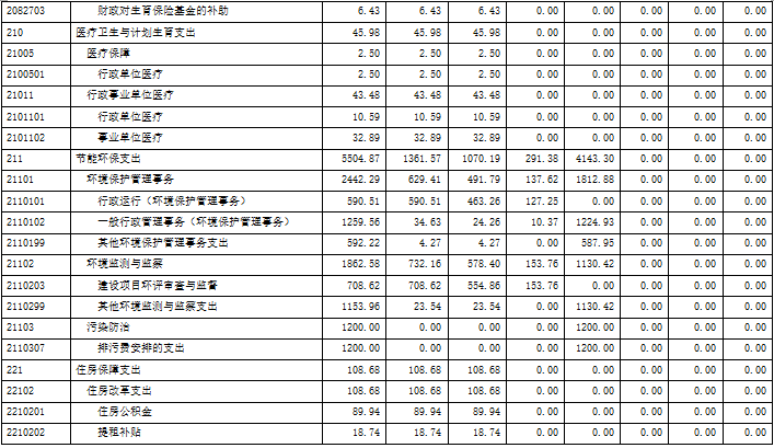 節能環保支出(類)環境保護管理事業(款)一般行政管理事務(項):指環保教育培訓與人才發展、黨建及精神文明創建、環境保護科研與合作、機關物業管理及運行保障等一般行政管理事務支出。