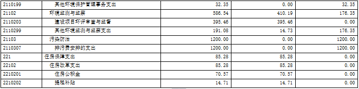 節能環保支出(類)環境監測與監察(款)其他環境監測與監察支出(項):指全市生態建設及環境管理工作;全市輻射環境安全監督管理工作;環境監測業務管理及監測人員技能培訓;全市環境監測網絡運行費及環境監測質量監管工作等支出。