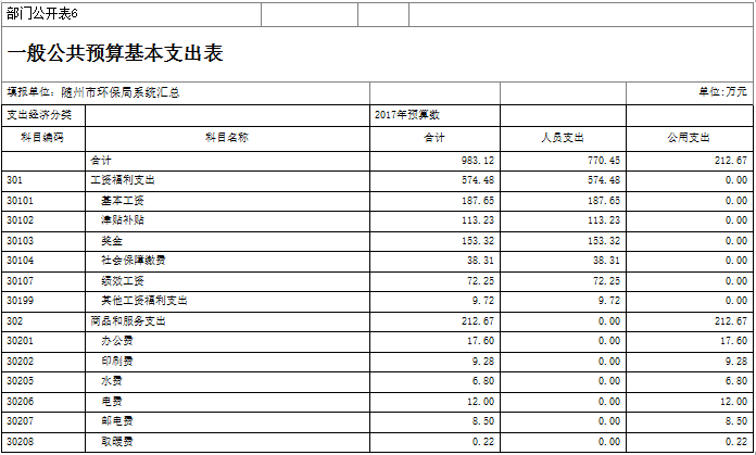 2017年度環保局系統匯總辦公費17.6萬元、印刷費9.28萬元、郵電費8.5萬元、差旅費11.5萬元、會議費5.65萬元、福利費9.8萬元、日常維修費9.91萬元、辦公用房水電費18.8萬元、辦公用房物業管理費7.95萬元、公務用車運行維護費12.95萬元、其他商品服務支出38.24萬元。