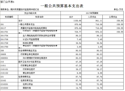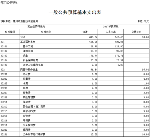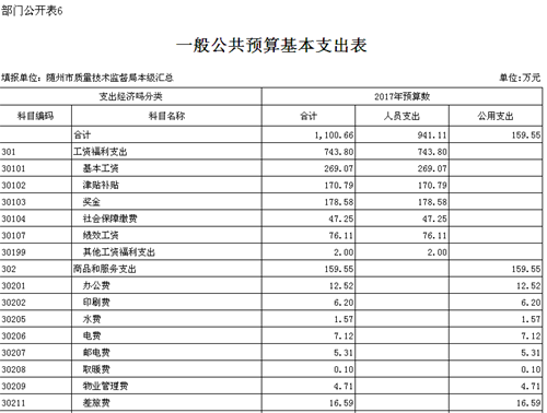 第三部分 隨州市質量技術監督局2017年部門預算表