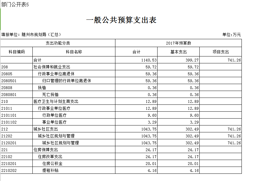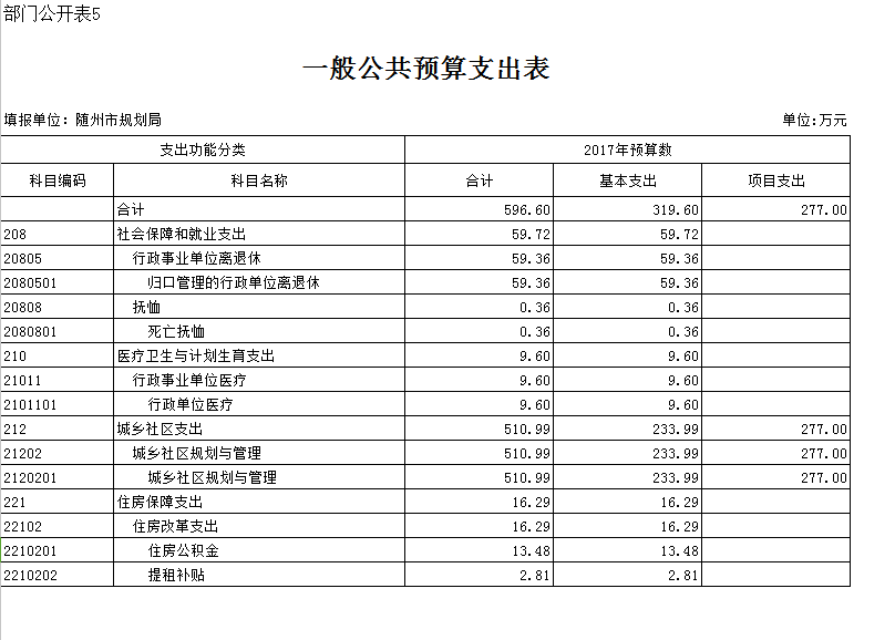 隨州市城鄉(xiāng)規(guī)劃局2017年度部門預(yù)算