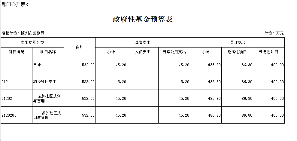 本級部門政府性基金收入為532萬元,政府基金支出為532萬元。比上年增加132萬元,增幅為33%,用于彌補日常公用經(jīng)費和項目支出,增加原因為項目較多。