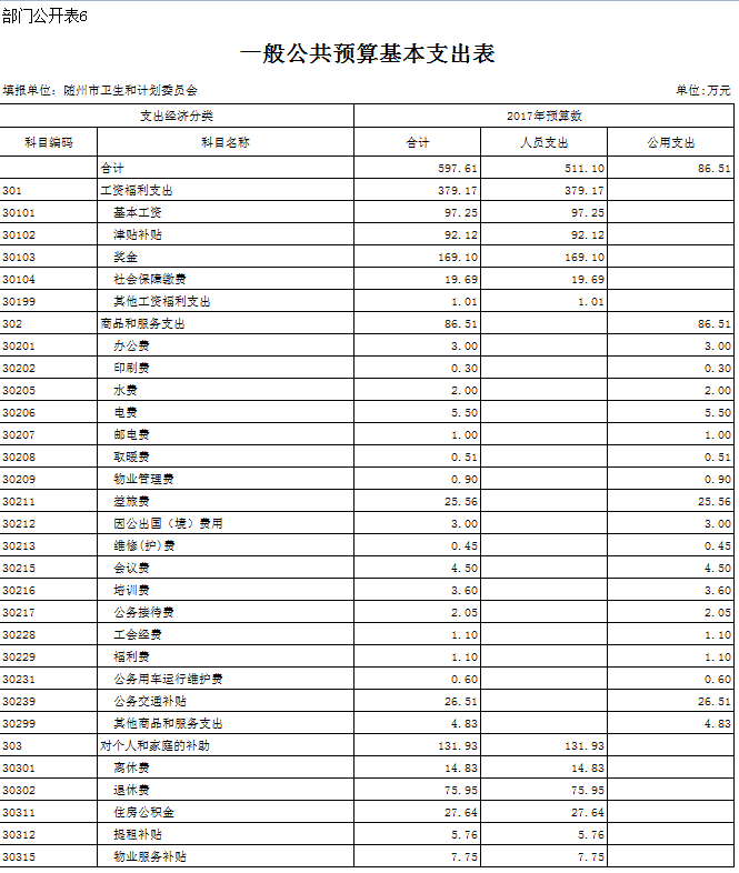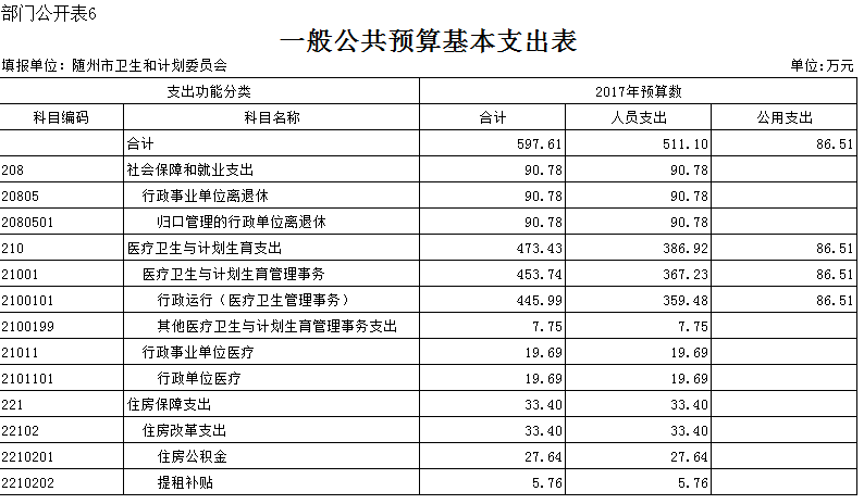 (一)財政撥款收支預算安排情況。2017年財政經費撥款預算997.61萬元,其中人員支出511.10萬元,日常公用支出86.51萬元,項目支出400萬元。