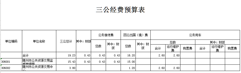2017年度,隨州市公共資源交易監督管理局三公經費預算15.43萬元,比去年增加1.33萬元,增長率9%,。其中,公務接待費0.43萬元,比上年下降0.26萬元,原因是執行中央八項規定。因公出國(境)費15萬元,比上年增加5萬元。增加原因主要是業務量的增加,公務用車1.3萬元,比上年下降2.11萬元,原因是公務用車改革車輛的減少。