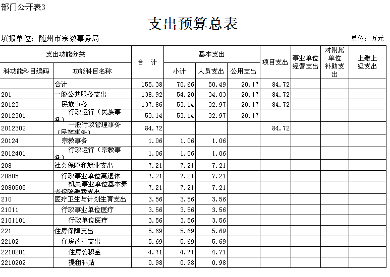 2210202 一般公共服務(wù)(類)住房改革支出(款)提租補貼支出(項):指市民宗局用于對機關(guān)個人和家庭的補助支出。