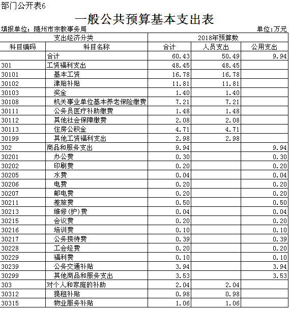 第三部分 隨州市民族宗教事務(wù)局2018年部門預(yù)算表