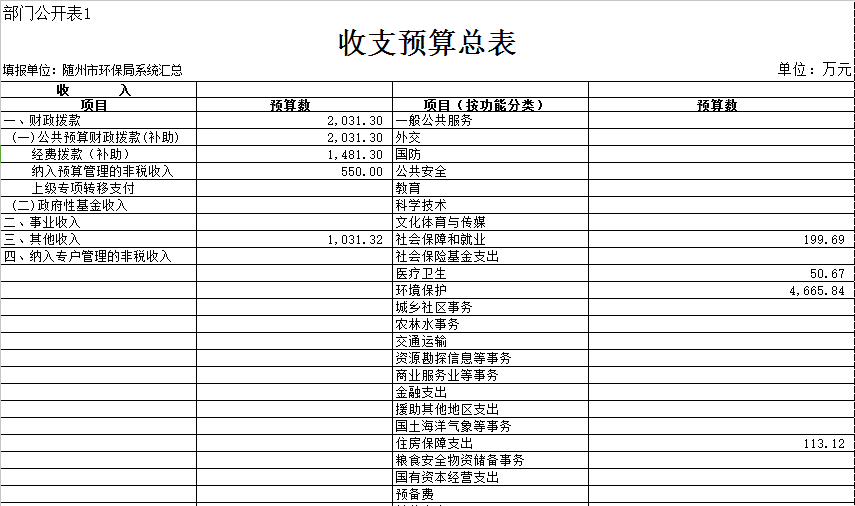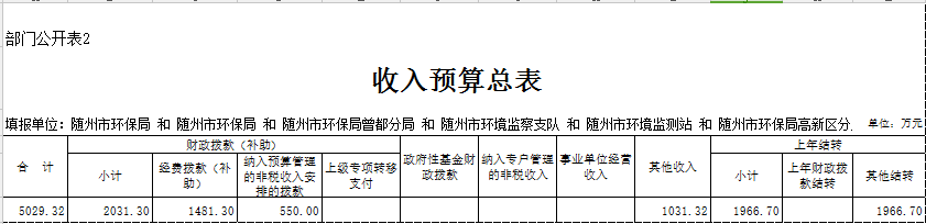隨州市環保局2018年部門預算
