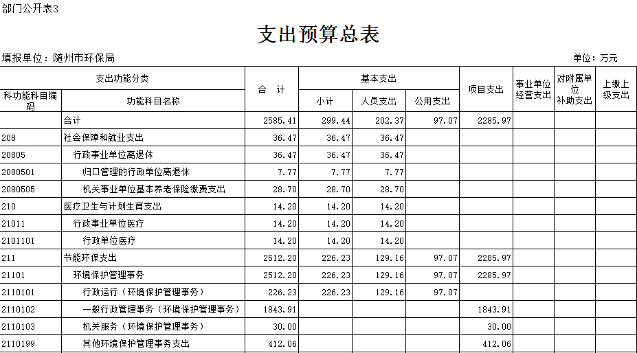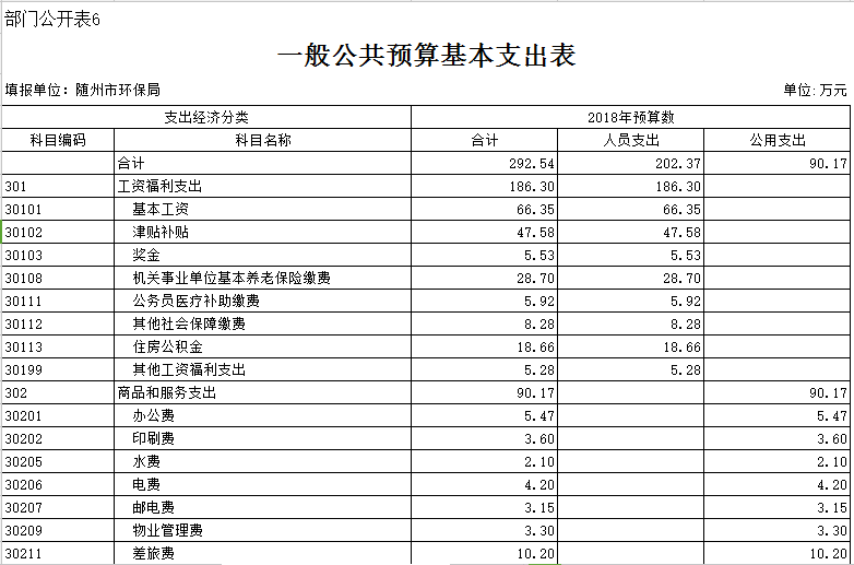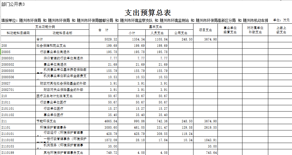 第三部分 ?隨州市環保局2018年部門預算表