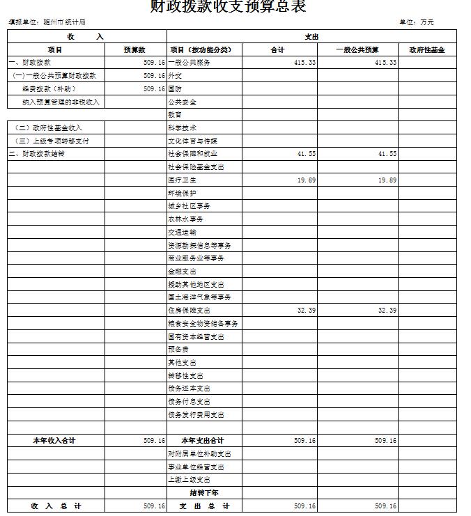 (一)隨州市統計局(含隨州市城市社會經濟調查隊、隨州市普查中心)匯總