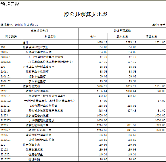 第三部分 隨州市住房和城鄉(xiāng)建設(shè)委員會2018年部門預(yù)算表