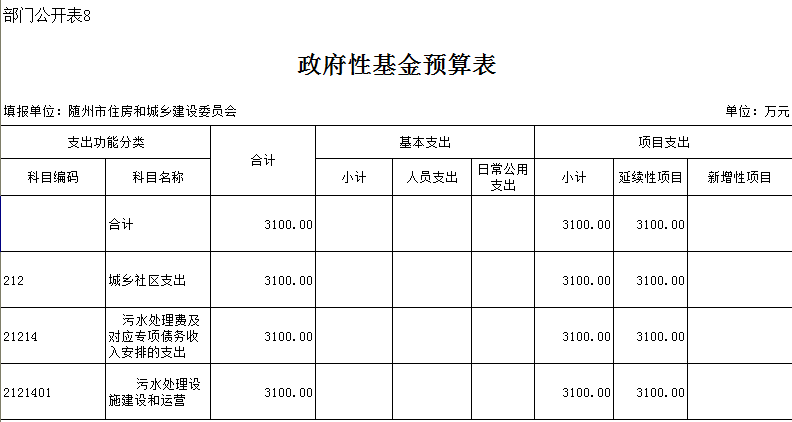 2、市住建委本級2018年政府性基金支出收入為3100萬元,較上年2553萬元,增加547萬元,增幅21.43%。增加部分為污水處理項目運營維護支出。