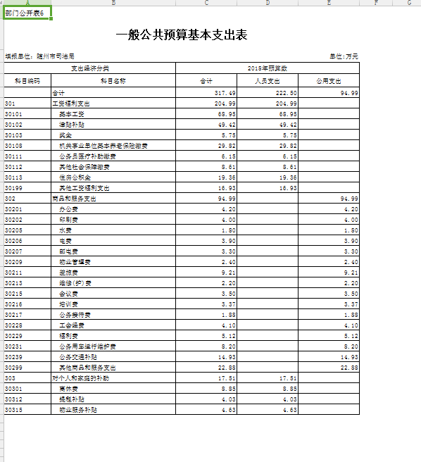 隨州市司法局2018年部門預算公開情況