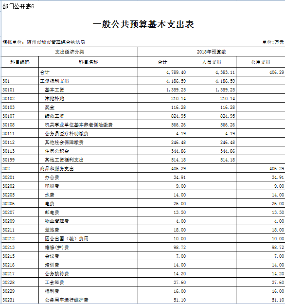六、執(zhí)法局本級(jí)預(yù)算表