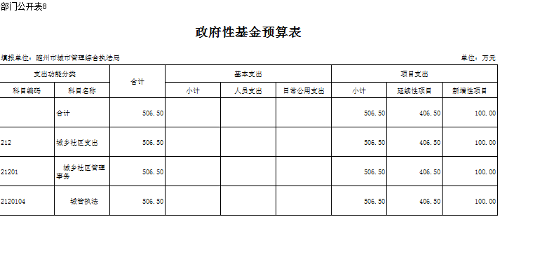 2018年城管局本級(jí)政府性基金506.50萬(wàn)元,延續(xù)性項(xiàng)目406.50萬(wàn)元,比去年增加了項(xiàng)目經(jīng)費(fèi)100萬(wàn)元,比上年增加15%,主要是延續(xù)性項(xiàng)目增加及取消收費(fèi)補(bǔ)助、新增工作人員辦公費(fèi)。