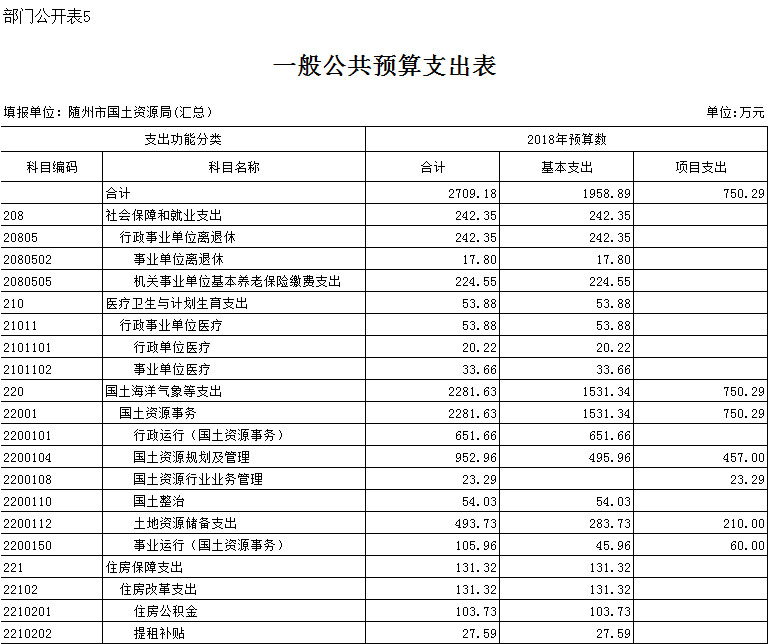 隨州市國土資源局2018年度系統匯總政府采購年初預算金額1185.71萬元,比去年1395.49萬元減少了209.78萬元,減少比例15.03%,主要原因是減少了耕地占補平衡、集體土地確權登記、土地開發復墾等項目預算。