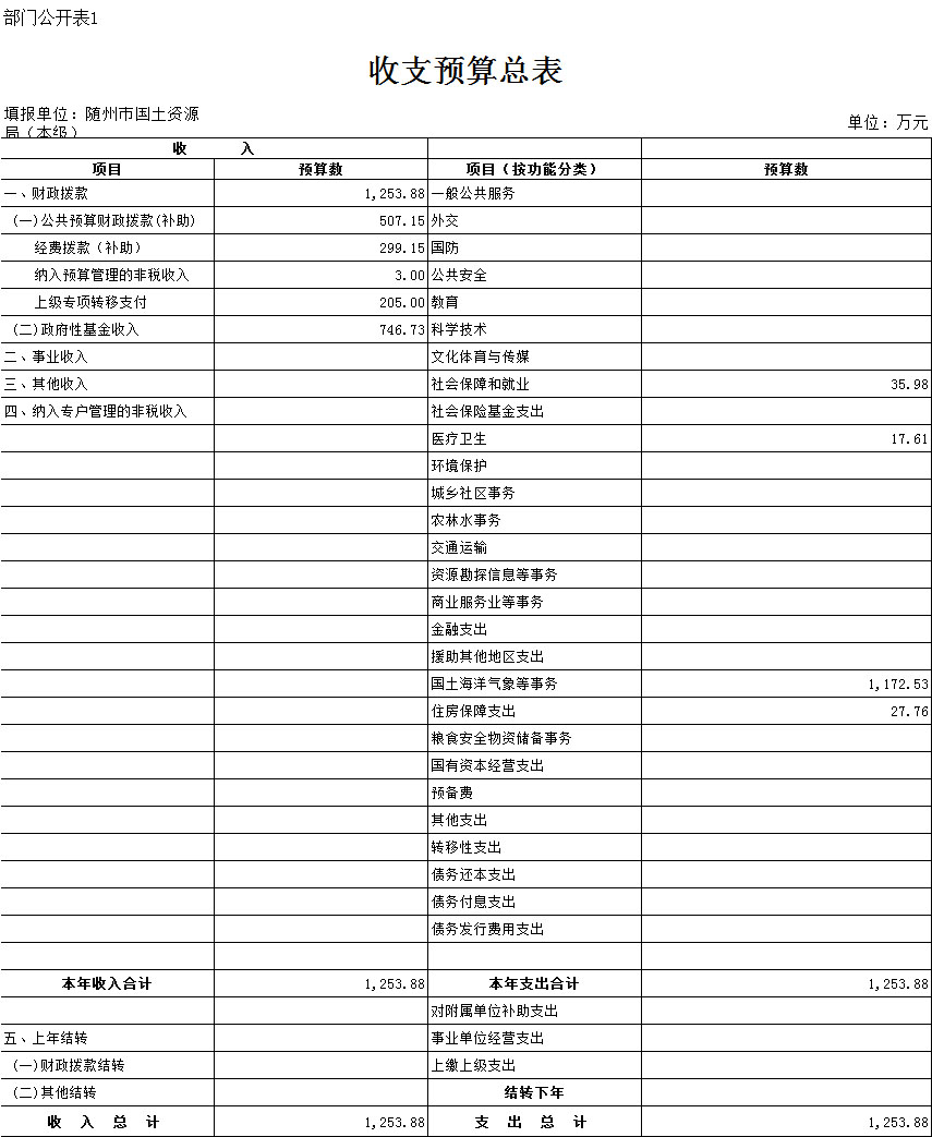 隨州市國土資源局本級2018年度收入預算合計1253.88萬元,其中公共預算財政撥款(補助)507.15萬元,政府性基金收入746.73萬元。比上年度預算收入總額1479.14減少225.26萬元,減少比例15.23% 。主要原因是減少了規劃修編、集體土地確權等項目收入。