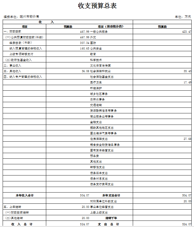 2018年部門支出預算總額524.07萬元,同比減少32.58%。按經濟分類:工資福利支出256.26萬、對個人和家庭補助支出9.91萬、商品服務支出197.9萬、其他資本性支出40萬、其他支出20萬;按功能分類:一般公共服務443.47萬、社會保障和就業35.43萬、醫療衛生17.49萬、住房保障支出27.68萬。較上年預算安排的694.83萬元減少170.76萬。按經濟分類:工資福利支出較上年的313.65萬減少57.39萬(說明:2018年工資預算不含五項獎勵工資,2017年獎勵工資實際發放87萬)、對個人和家庭的補助支出較上年的69.2萬減少59.29萬元(說明:2018年的預算不含退休人員工資,退休人員工資由社保局統一發放,費用相應減少)、商品服務支出較上年的262.07萬元減少64.17萬、其他資本性支出較上年的49.91減少9.91萬、其他支出較上年增加20萬元(說明:其他支出是給縣市區物價部門的監測、認證等經費撥款)。按功能分類:一般公共服務較上年的617.12萬減少173.65萬、社會保障和就業較上年的37.92萬減少2.49萬、醫療衛生較上年的16.65萬增加0.84萬、住房保障支出較上年的23.14萬增加4.54萬元。支出減少的原因:獎勵工資和退休人員工資沒有列入預算,同時減少了不合理支出項目。