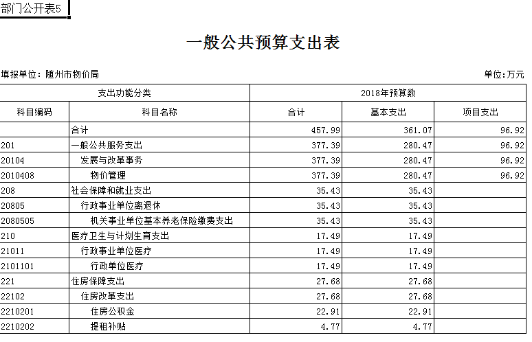 2018年部門經費撥款307.34萬元,其中基本支出294.34萬元(人員支出236.34萬、日常公用經費58萬)、項目經費13萬。按科目分,物價管理213.74萬、基本養老保險繳費35.43萬、行政單位醫療17.49萬、住房公積金22.91萬、提租補貼4.77萬。財政經費撥款較上年383.83萬元減少76.49萬元,同比減24.89%。減少原因是獎勵工資和退休人員工資沒有列入預算。