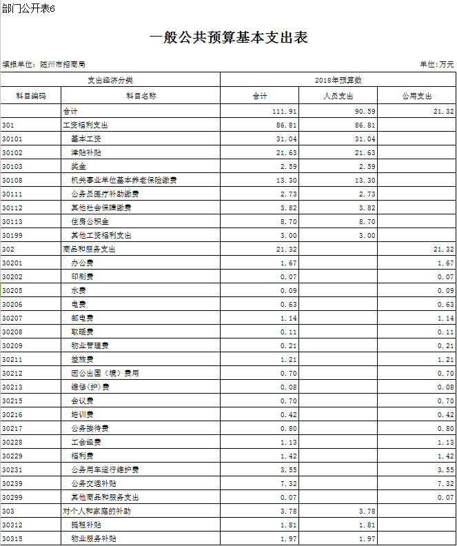第三部分 隨州市招商局2018年部門預(yù)算表