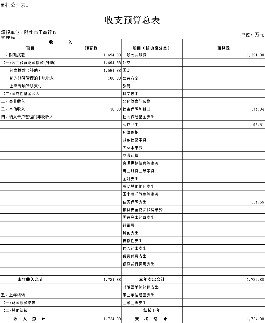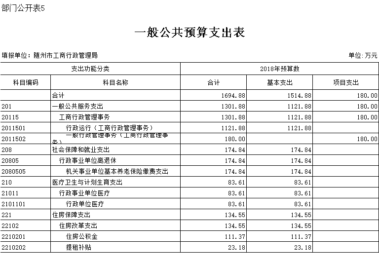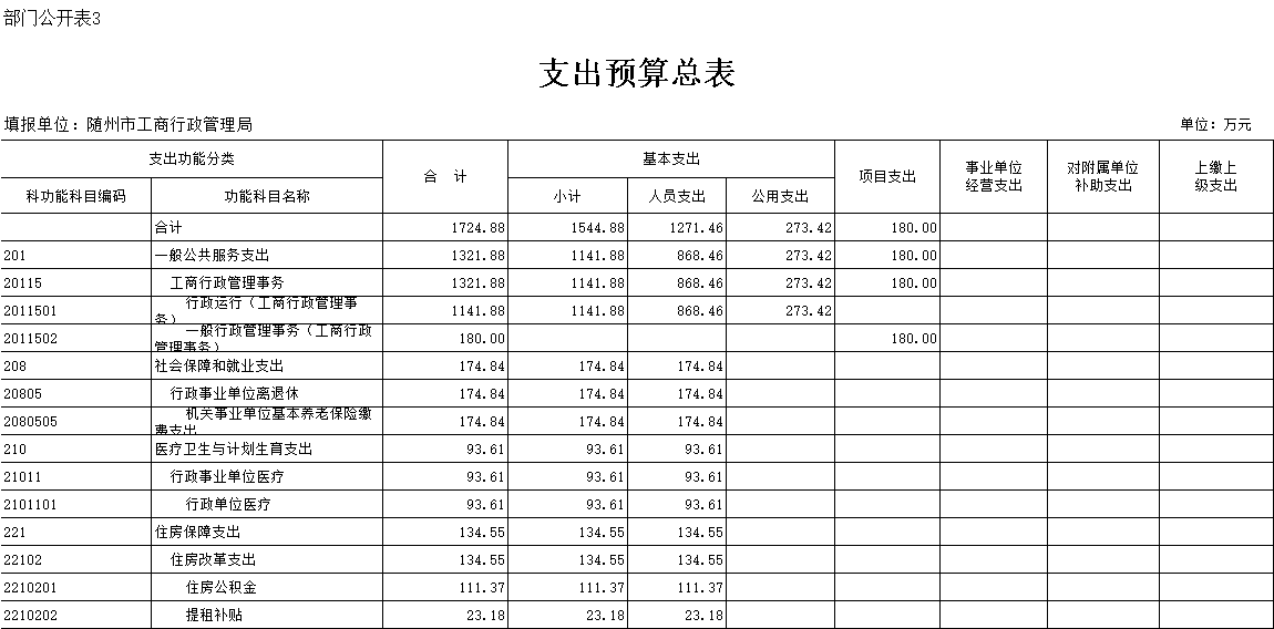 隨州市工商局預算管理單位1個,人員編制數130人,實有在職人數115人,退休18人。