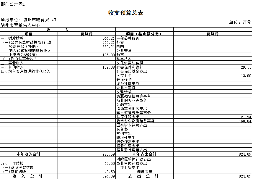 2018年糧食部門預算支出總額824.09萬元,比去年1008.62萬元減少184.53萬元,同比減少18.30%,減少主要原因是2017年隨州市糧食質量監測站整體劃給了隨州市公共檢驗檢測中心和預算中不包含退休人員的工資及職工獎勵性工資。按支出功能分類: