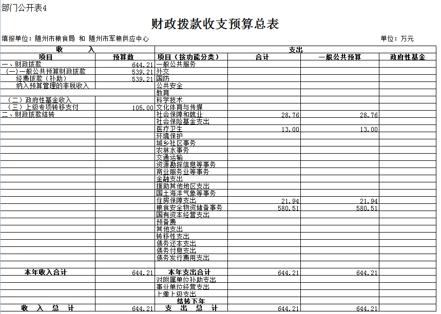 1.財政撥款644.21萬元,其中上級專項轉移支付105萬元