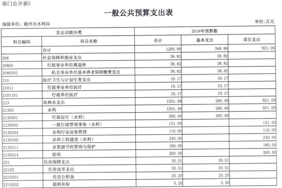 第三部分 隨州市水利局2018年部門預(yù)算表