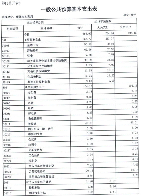 第三部分? 隨州市水利局2018年部門預(yù)算表