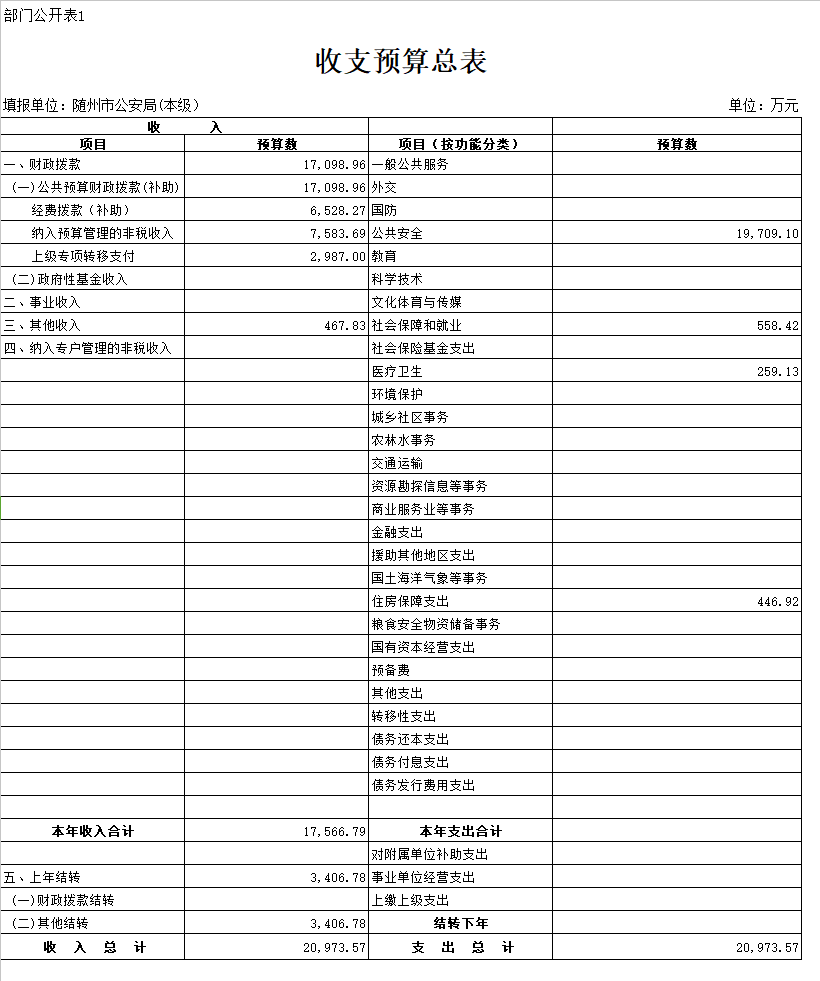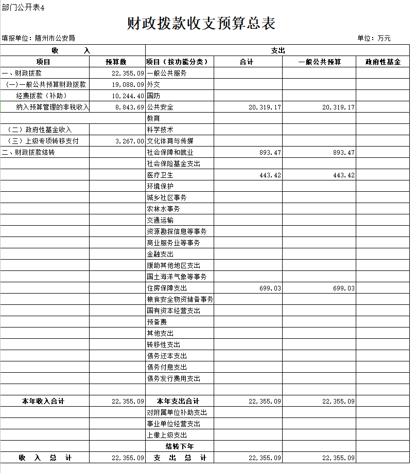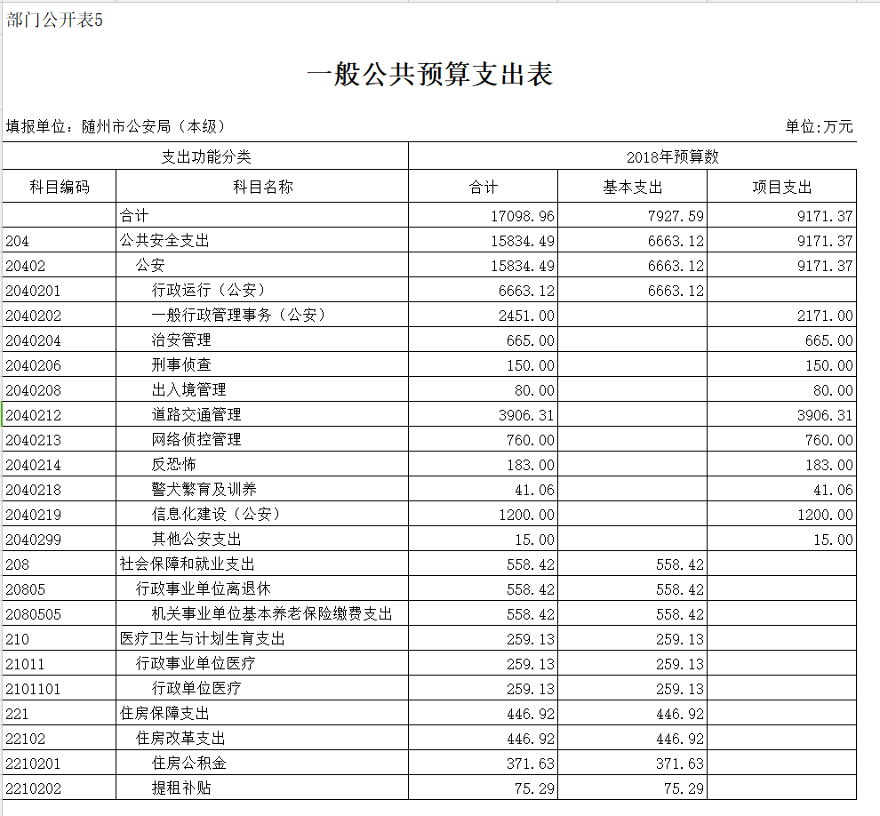 隨州市公安局預算(本級)含市局機關及高新區公安分局,但不含消防支隊預算。其中: