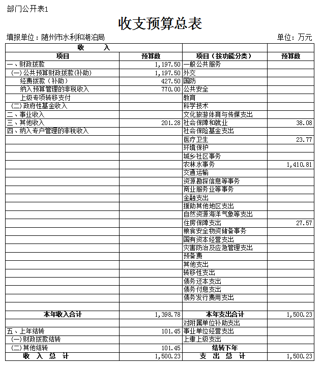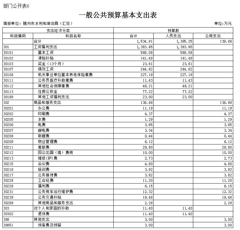 第三部分? 隨州市水利和湖泊局2020年部門預(yù)算表
