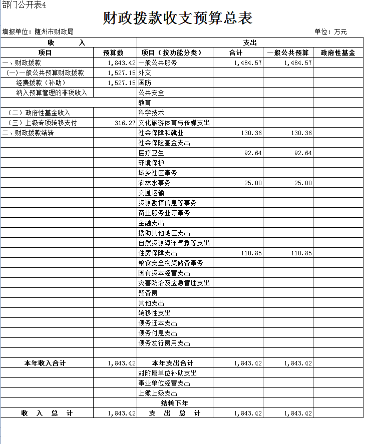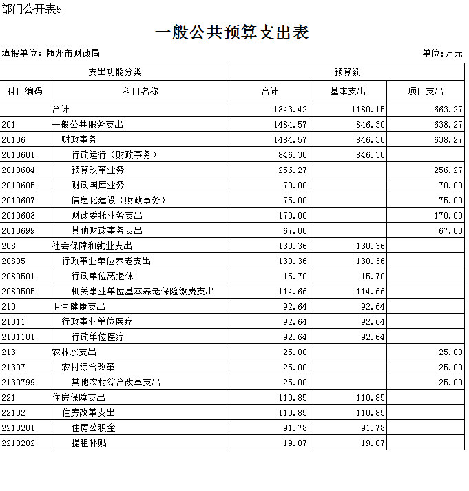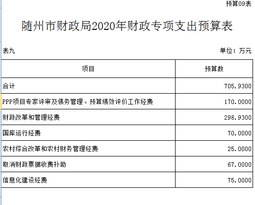 第三部分 隨州市財(cái)政局2020年部門預(yù)算表
