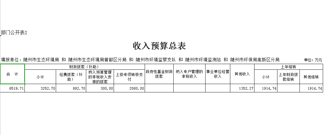 隨州市生態(tài)環(huán)境局2020年部門預(yù)算