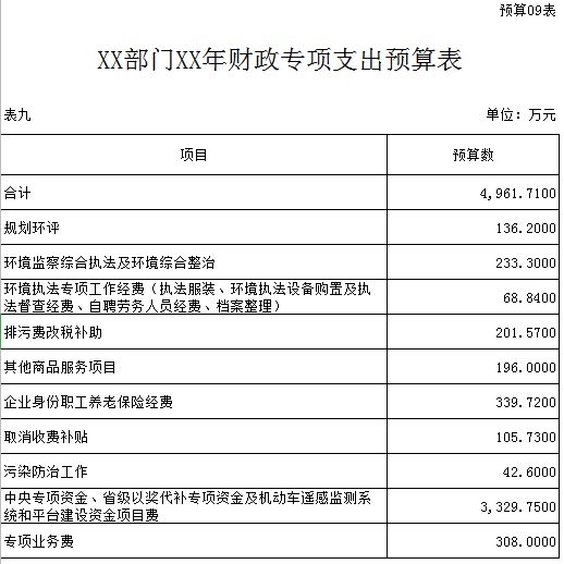 九、財政專項支出預(yù)算表