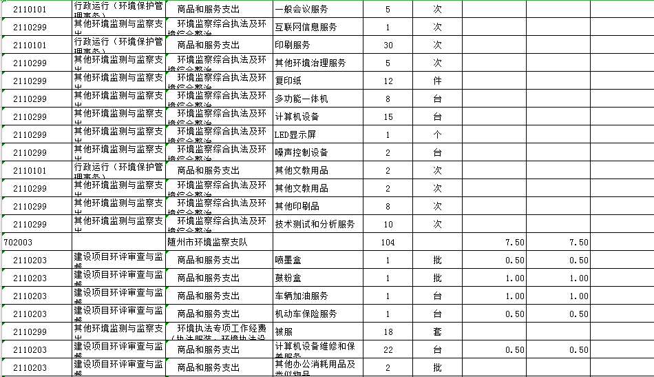 節(jié)能環(huán)保支出(類)環(huán)境保護管理事業(yè)(款)其他環(huán)境保護管理事務(wù)支出(項):環(huán)境保護宣傳教育、環(huán)保法治建設(shè)、規(guī)劃編制、環(huán)境保護信息化工作經(jīng)費以及不可預(yù)見性支出等。