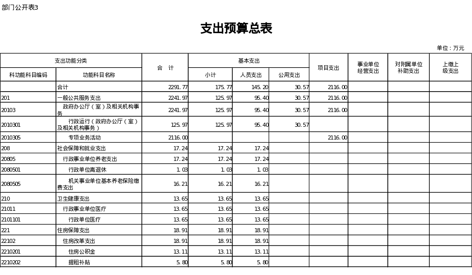 其中,一般公共服務2241.97萬元、社會保障和就業17.24萬元、衛生健康13.65萬元、住房保障支出18.91萬元。