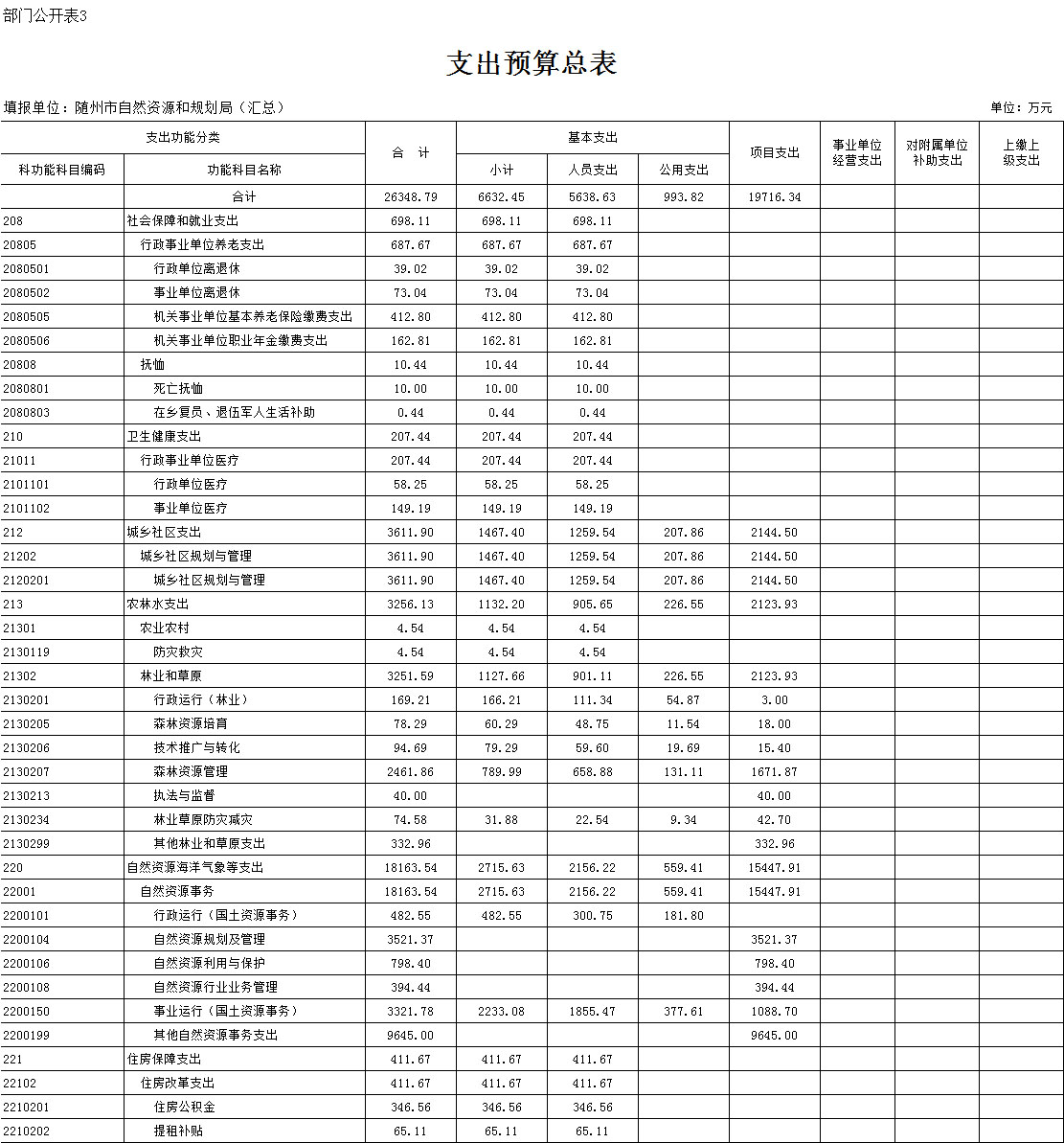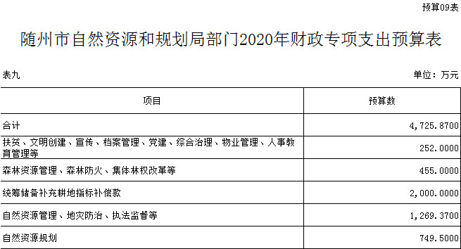 第三部分 ?隨州市自然資源和規劃局2020年部門預算表