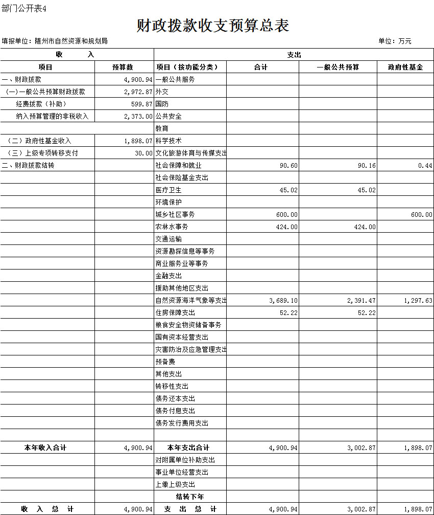 四、財政撥款收支總表