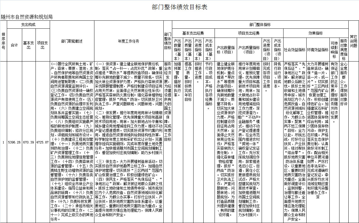 一、部門整體績效目標編制情況說明