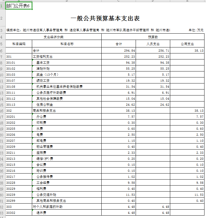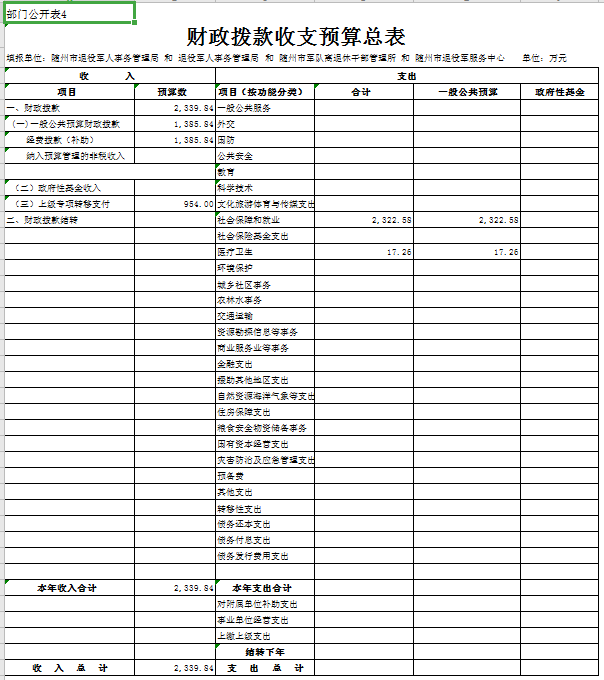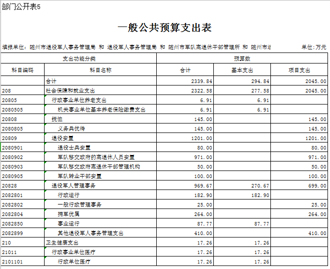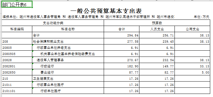 第三部分 隨州市退役軍人事務局2020年部門預算表