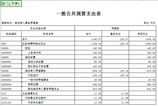 2020年,市退役軍人事務局機關財政撥款預算支出合計1140.57萬元,較上年增加了691.57萬元,同比增加154.02%,主要原因為2020年新增了基本支出以及“退役士兵社會保險接續資金”“春節、八一慰問”等項目預算。