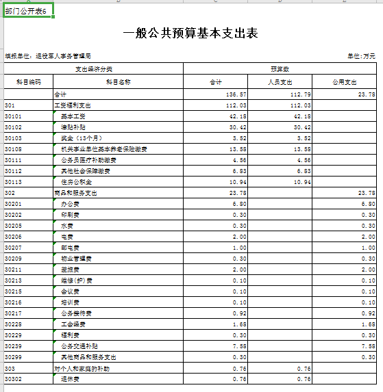 ??六、一般公共預算基本支出表