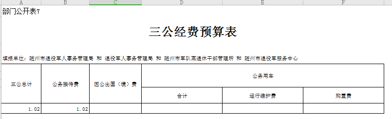 1、公務接待費1.02萬元,上年度為0.53,增幅92.45%,主要原因為局機關無上年“三公”經費預算,本年新增數據,軍休所壓減公務接待支出。