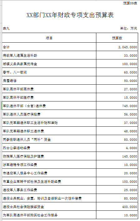 ??九、財政專項支出預算表