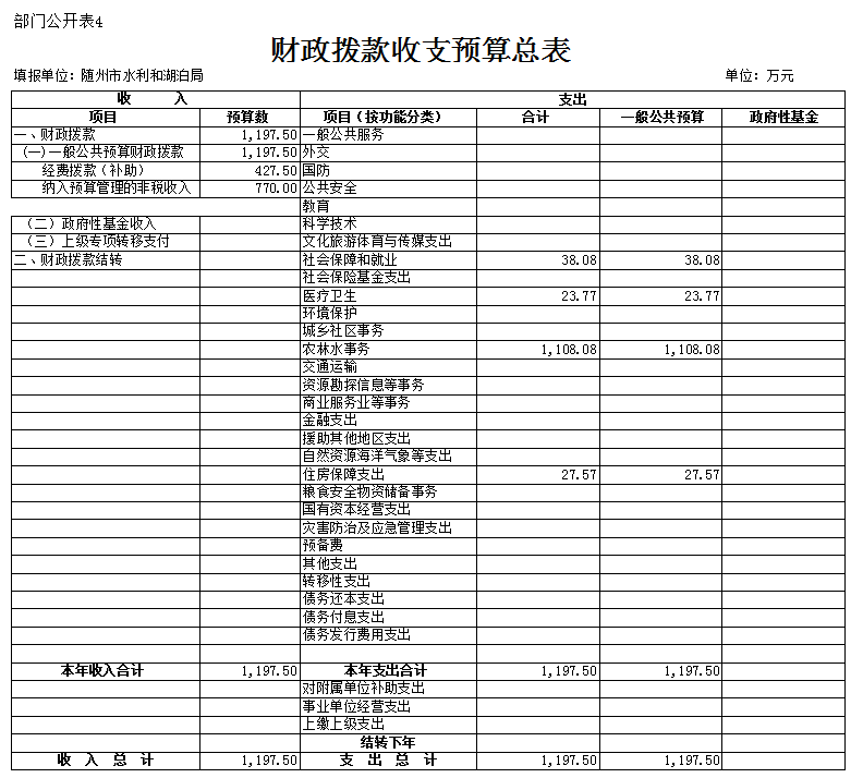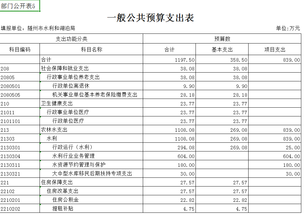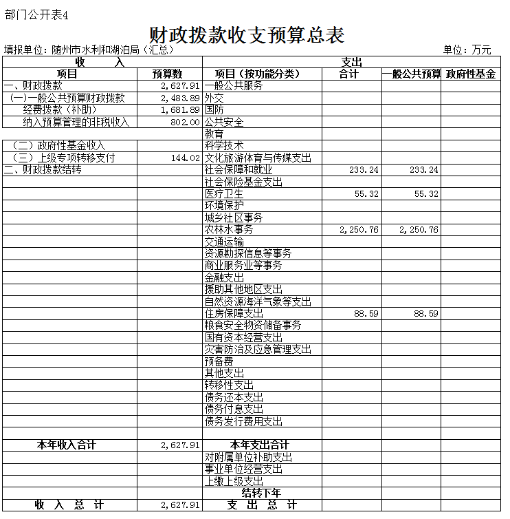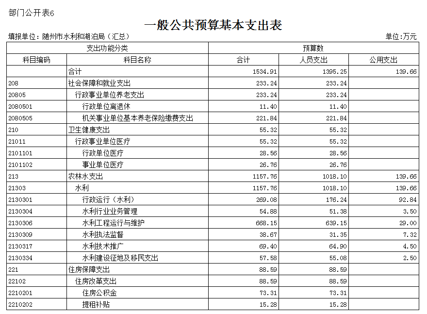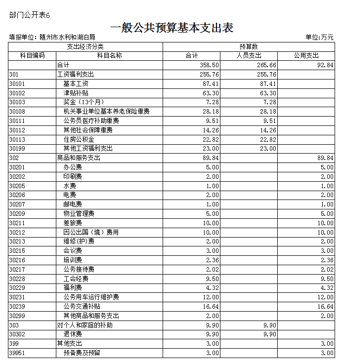 第三部分? 隨州市水利和湖泊局2020年部門預(yù)算表