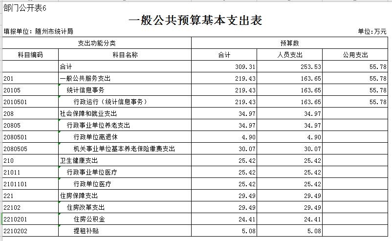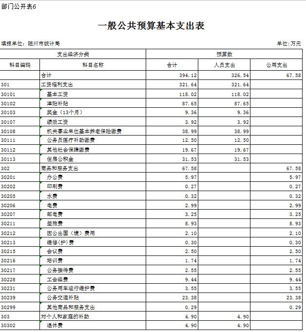 一、隨州市統(tǒng)計(jì)局2020年部門預(yù)算表(匯總)