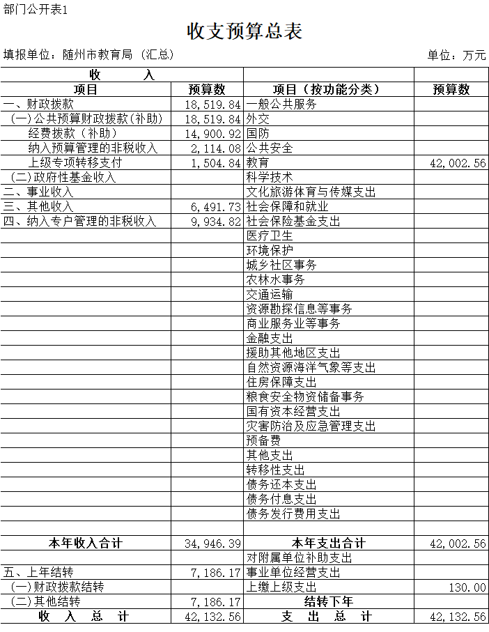 一、部門收支預算總表