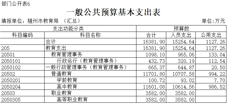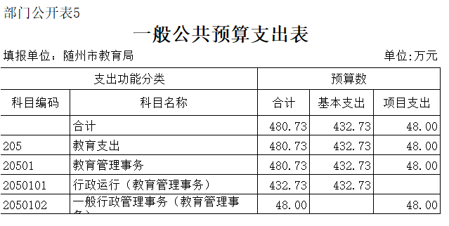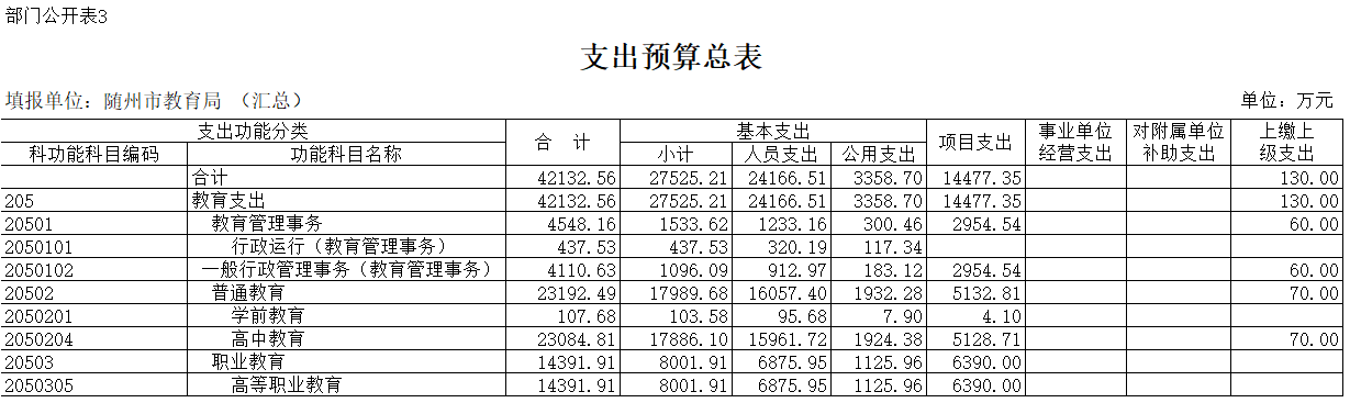 第三部分 隨州市教育局2020年部門預算表