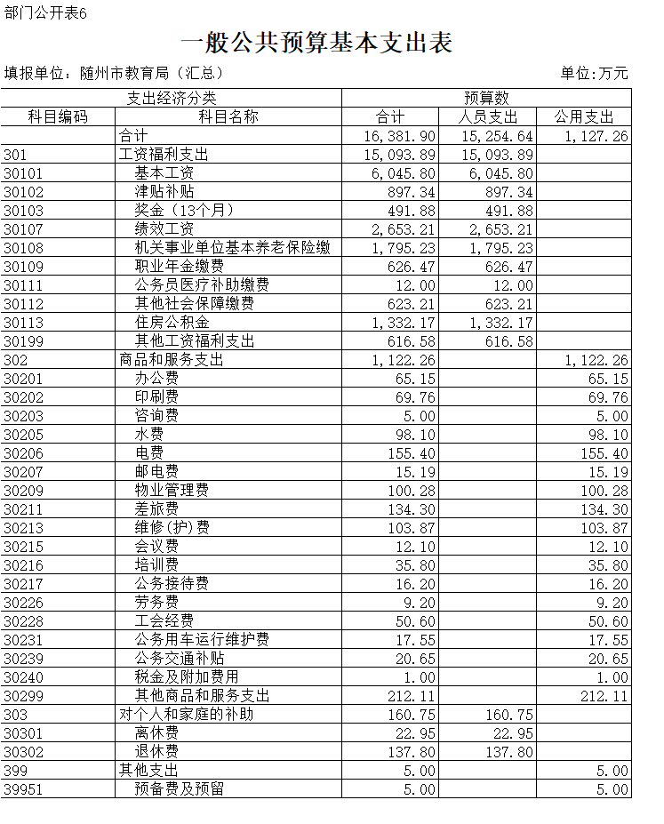 六、一般公共預算基本支出表