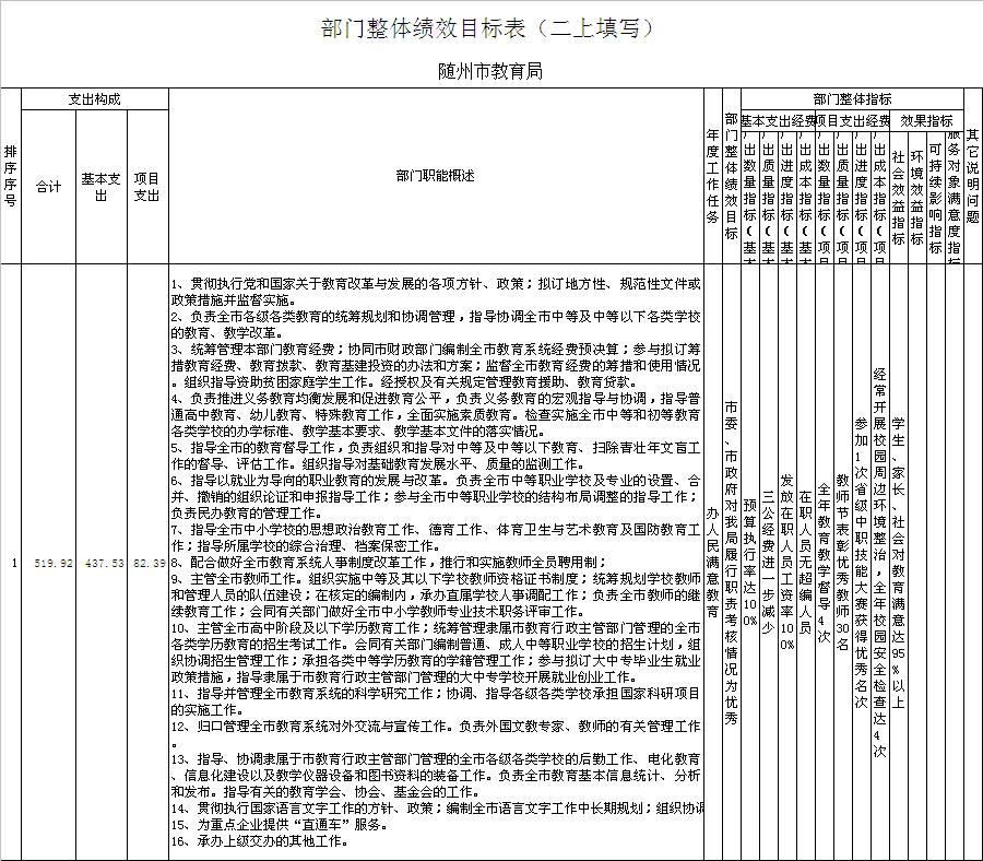 1.部門整體績效目標編制情況